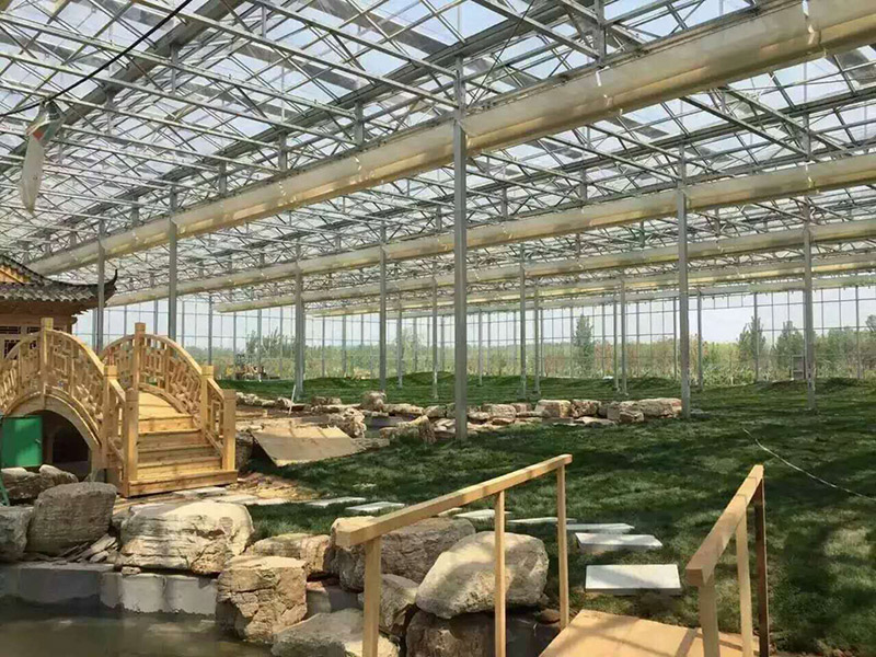 The ecological restaurant we built has overcome the drawbacks of easy greenhouse condensation and small field of vision. With the concept of large space, comfort and environmental protection, we have designed and developed high roof ridges, large spans and large spaces. The covering materials are made of glass or PC. The board has a beautiful appearance, a magnificent atmosphere, and an open interior, spacious and bright. Staying in it, you can feel the charm of the countryside and enjoy the delicious food.